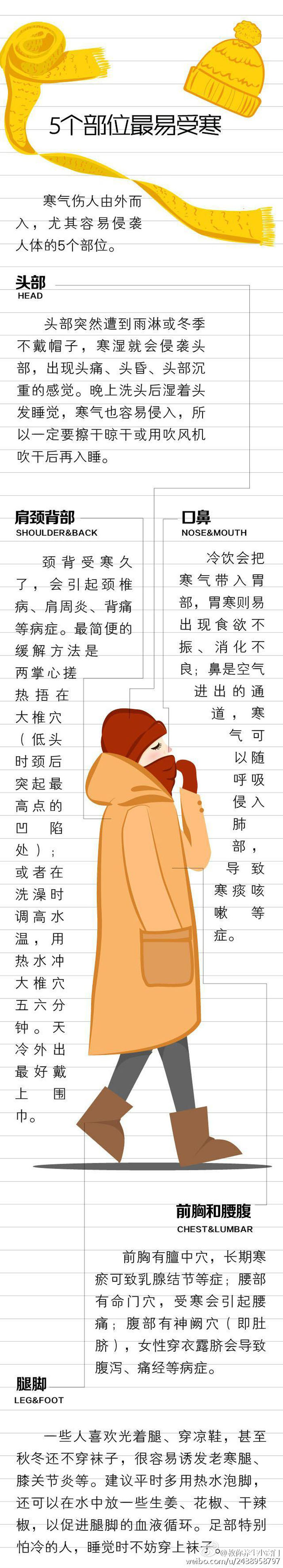 寒潮来了!中央气象台今晨发布下半年首个寒潮蓝色预警:未来三天,我国大部地区气温将被打压。天气渐冷,寒气“出招”,随之而来的感冒、咳嗽也让人不胜其烦。哪些部位最易受寒?怕冷如何保暖?教你抵御寒气!
