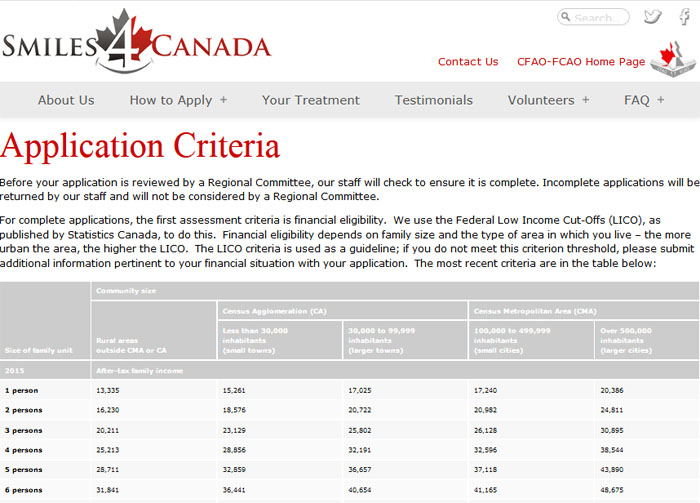 需要说明的是,你需要先去网站看一下家庭收入是否符合条件,点击该网站的How to apply,再点击Application Criteria,就能看到一个根据加拿大联邦标准制定的是否符合低收入家庭的表格。之后再点击“Information to be included in application”来准备材料即可。