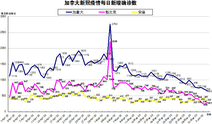 6月2日:加拿大新增病例连续四天低于800 安省却逆势反弹至446