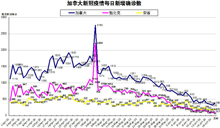 6月2日:加拿大新增病例连续四天低于800 安省却逆势反弹至446