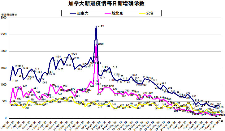6月2日:加拿大新增病例连续四天低于800 安省却逆势反弹至446