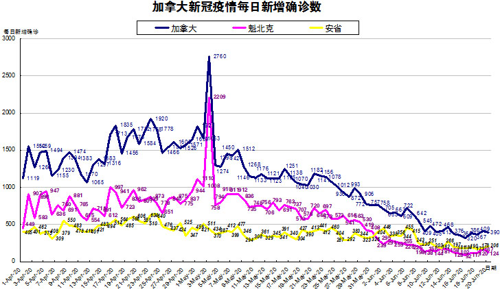 6月9日:加拿大新冠疫情呈下降趋势 连续2日魁省低于200安省低于300