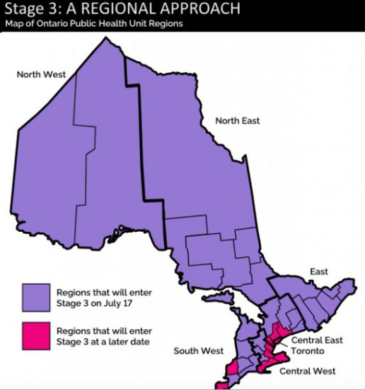 7月13日:大部分安省地区7月17日进入重启第3阶段,不包括大多伦多地区