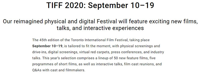 多伦多国际电影节9月10-19日如期举行 受疫情影响举办方式有所变化 — 加拿大新冠肺炎新闻