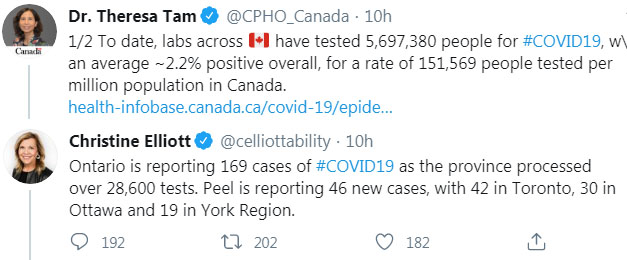 —— 根据加拿大首席卫生官Dr. Theresa Tam在其Twitter所发布的数据显示,截止9月5日,加拿大共检测了5,697,380,确诊率为2.2%(世界卫生组织设定的目标是使阳性确诊率保持在5%以下)。每100万人口中共有151,569人接受测试。谭咏诗(Theresa Tam)博士还表示,过去一周的主要担忧是每日病例数的持续增加。“尽管我们远远低于五月初高峰时每天报告的近1800例病例,但我们已经看到新冠疫情的活动性指标呈上升趋势。加拿大在9月4日报告了631例新病例,最近7天平均数是每天545例,这超出了7月中旬的每日最大病例数。”