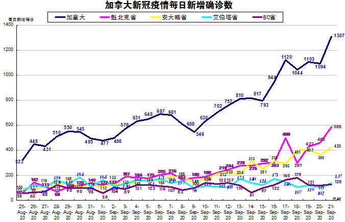 9月7日:加拿大每日新增确诊病例数一直在稳步增长 疫情令人担忧