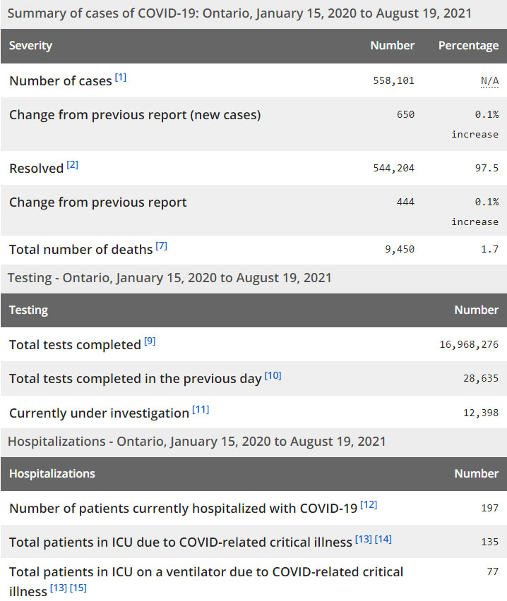8月16日:安省连续五天超过500例67%未接种疫苗 连续三天创零死亡记录