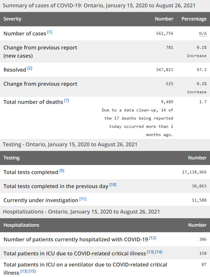 8月16日:安省连续五天超过500例67%未接种疫苗 连续三天创零死亡记录