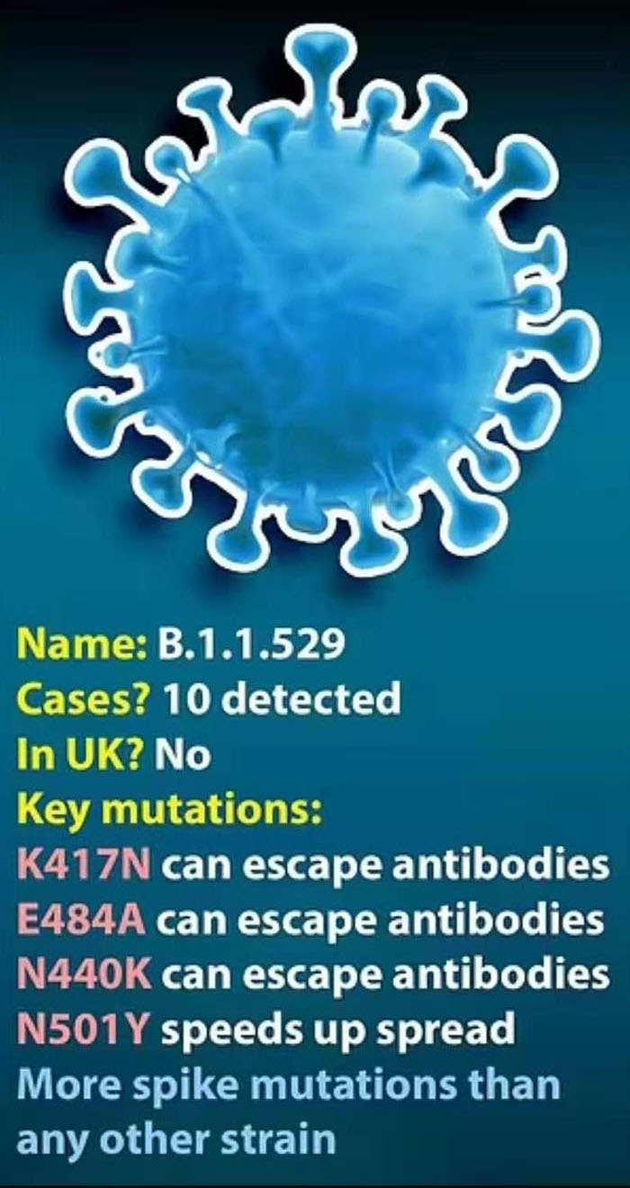 —— 南非又发现了一种新冠病毒的变异病毒,科学家们称这是一个令人担忧的变异病毒,因为它的突变数量众多,并且在南非人口最多的豪登省的年轻人中迅速传播。