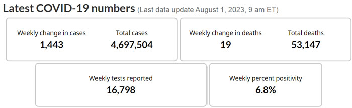 【加国生活网编译报道】截至2023年8月4日,加拿大新冠确诊病例总数为4695805(一周新增1996),死亡52954(一周新增69例)。由于加拿大各省在最近几个月纷纷调整疫情数据的报告方式,由每天改为每周、每半月和每月,导致各省的数据统计存在一些疏漏,加国生活网只能根据加拿大卫生部的数据查漏补缺,加拿大卫生部官网截至8月1日的数据显示新冠确诊病例总数为4697504、死亡53147。安省确诊总数1627739(一周新增683,死亡新增14);魁省确诊总数1352554(一周新增696,死亡新增13);BC省确诊总数403605(一月新增617,死亡新增42)。加拿大卫生部已批准首款针对60岁及以上成年人的呼吸道合胞病毒(RSV)疫苗,但在今年秋季呼吸道病毒季节,其使用可能会受到“限制”。加国生活网专门制作了如下统计数据表: