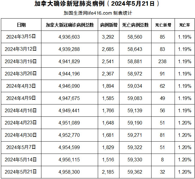 【加国生活网编译报道】截至2024年5月21日,加拿大新冠确诊病例总数为4,958,300(一周新增2,185),死亡59,362(一周新增32例)。东安格利亚大学的最新发现表明,在第一波Omicron疫情后,戴口罩并不能降低感染新冠病毒的风险。该研究分析了随着新冠疫情的发展所引发的感染风险因素的变化,而口罩的使用、家庭规模和职业接触等因素的重要性也随着时间而变化。加国生活网专门制作了如下统计数据表: