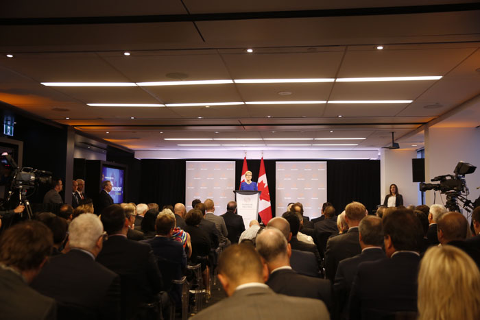 省长韦恩于2016年10月7日一早联同联邦、市府及汤森路透的人员,一起宣布这家企业在安省扩展业务的大计。