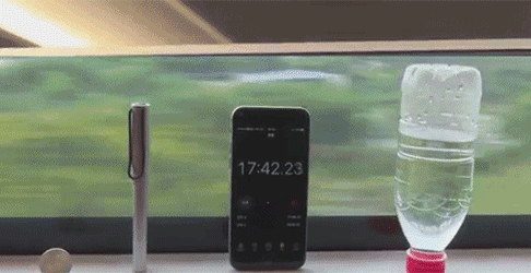 有网友还对“复兴号”的平稳性做了实验,结果显示,将盛满水的水杯放置在窗沿上,滴水不洒;座位小桌板,立笔不倒。