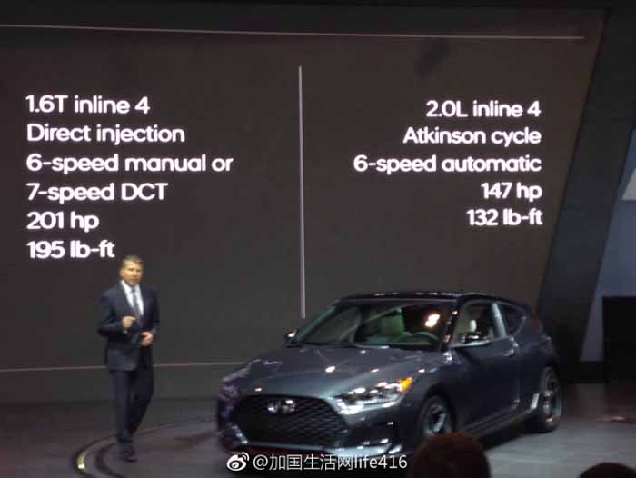 Hyundai Veloster 拥有运动轿跑车的设计,采用2.0升4缸发动机搭配六速电控自动变速器、在6,200转/分钟时提供147马力的峰值输出,最大扭矩为132磅英尺。而Veloster N则提供独特的N型前部面板和专用前部风道的格栅,可增强制动冷却效果。在外形上,独特的N设计摇臂侧门槛和双辐条星型设计的19英寸合金车轮清楚地将N车型与其他Veloster车型区分开来。Veloster N的后部采用集成式扩散器的后部筋膜设计以及高流量的双排气管。