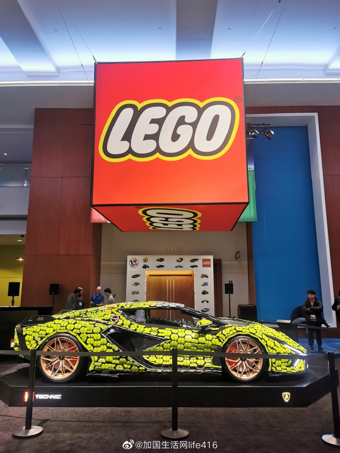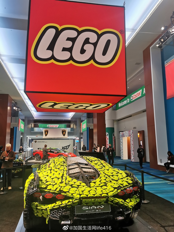 这是加拿大国际车展的一个很吸引人的展区,停放着一辆真人大小的 LEGO® TechnicTM Lamborghini Sian FKP 37。