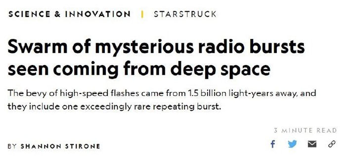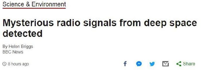 BBC报道称 加拿大发现15亿光年外的无线电讯号 来源未知但不排除是外星智慧的迹象