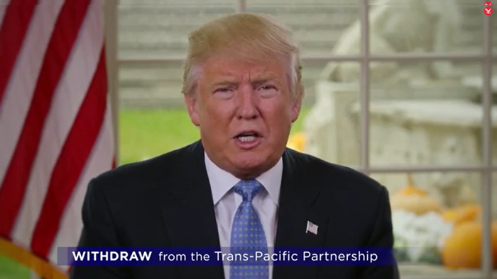 11月22日,美国候任总统特朗普宣布了上任头100天的行动计划,其中首先将令美国退出跨太平洋伙伴关系协定(TPP),他在当选之前,多次宣扬这样的主张,当选之后又讲了很多次。陈国治怎样看这个问题?