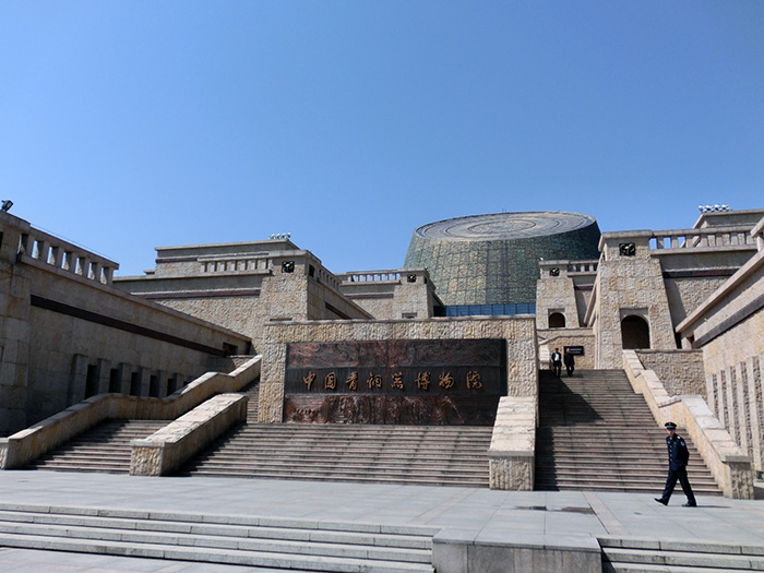 从石鼓阁的东侧登上一个小坡,又有隐藏绿树从中的一番景色,令大家有“柳暗花明又一村”的感觉。一汪池水中一人一骑的石雕威武雄壮,池周围的绿地散发着草香气,让喜爱卧躺拍照的女士们觅到了好地方。翻过小山坡,就要沿坡度很大的石路下山,一路上也有几处雕塑,其中记有“周公制礼”和“虞芮争讼”故事的石碑。转过一道弯,就来到了宝鸡青铜器博物院的楼前。其实,这个博物院的“平台五鼎”的标志性建筑我与夫人从咸阳机场乘车过来的路上就看到了,当时我很奇怪,怎么会有如此奇怪的造型,到了眼前我才知道它的来历,原来,这个风格独特的造型,浓缩了西周列鼎制度的深刻内涵,故显得格外气势雄伟、新颖别致。进到馆内,看到共有四个展厅,分别为“青铜之乡”、“周礼之邦”、“帝国之路”和“智慧之光”,这些展厅荟萃了宝鸡地区考古发现的青铜器、玉器、陶器、金器等精品,展示了周族兴起、古公迁岐、武王灭商、分封诸侯、周公礼制、秦君游猎、穆公称霸等一系列重大史实,生动的再现了周秦王朝的各个历史侧面,让我意识到青铜文化魂之所在,看到了周秦文明对华夏五千年所做的巨大贡献。特别需要提出的,展厅中制作的青铜冶炼过程的塑雕艺术的生动和详实,衷心为我们老祖宗的智慧和创造能力所折服和自豪。