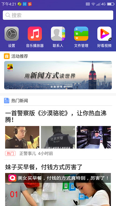 我夫人的手机型号是“为可(vk7plus)”,手机系统嵌装360卫士软件,前几天,我按其发布的更新要求升级其APP后,发现手机桌面多出了一个不具名的页面,页面上方排列一组APP快捷链接图标,下方则显现一大溜新闻标题和图片推荐(图1)。问题是:这个忽然冒出来的页面与其它罗列APP图标的桌面不协调,不仅所排列的几个图标与原桌面的重复,而且刊登的新闻内容多属无聊,我夫人不太喜欢,要我将其关闭。