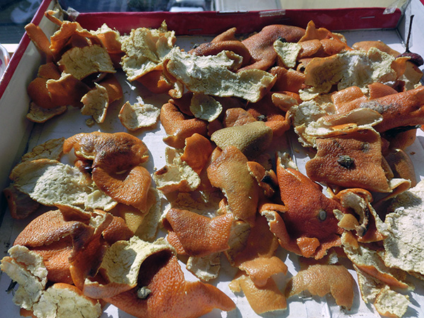 从今年初秋至初冬,我积攒的首批新鲜桔皮(积攒过程也不容易)终于进入“一蒸”和“一晒”阶段(详见以下照片)。
