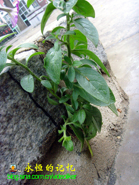 看枝叶和花瓣,好像是矮牵牛花。不知何时滚入一粒种子,竟如此顽强与不屈。向“小花”学习,也塑造顽强与不屈。至少精神上是如此。 …2009-7-28 18:51