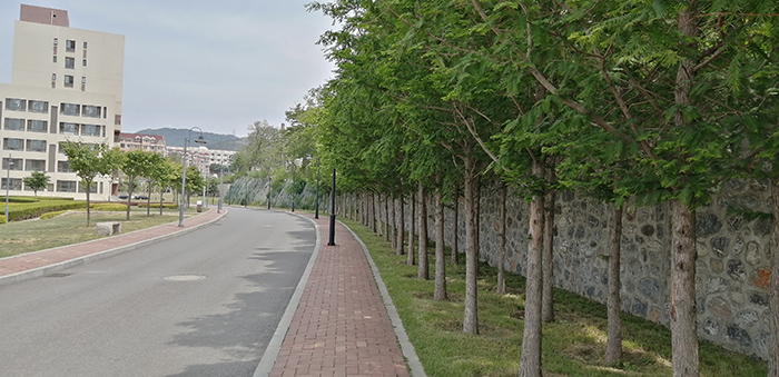 先说说环境。穿过东门一侧的小花园,就可以看到一块镶嵌在石壁上的纪事牌,上书“大连理工大学校园东部环境改造工程纪事”,读罢方知,原来校园东部环境的改造竣工至今还才四年之久,其改造面积达到50000平方米之大,拆除了临建危房5000平方米,清除垃圾10000平方米,铺设沥青道路面积7500平方米,铺设人行道3000延米,新增绿化4000平方米,栽植大型乔木303株,让我最为感兴趣是沿弘远路两侧的“银杳大道”和靠近东侧围墙分布在健康大道两侧的“樱花长廊”,尽管栽植的这两种观赏树尚未长大,但可以想像再过几年,当春天和秋天来临之时,校园里景色将成为市区内一道亮丽风景线,师生和市民赏季节时花再不必远途跋涉寻觅了。更何况东部区域的原有和移植的刺槐树已经形成规模,再加上人工培植的其它多树种和遍布各个角落的绿草地,令东部环境显得更加多彩和青翠,也使这块原本校园内荒芜边远土地焕发了“青春”,为学校发展教学阵地提供了宝贵的土地资源,也不得不说亦归功於当年以屈伯川为首校领导圈地建校时的卓越远见。