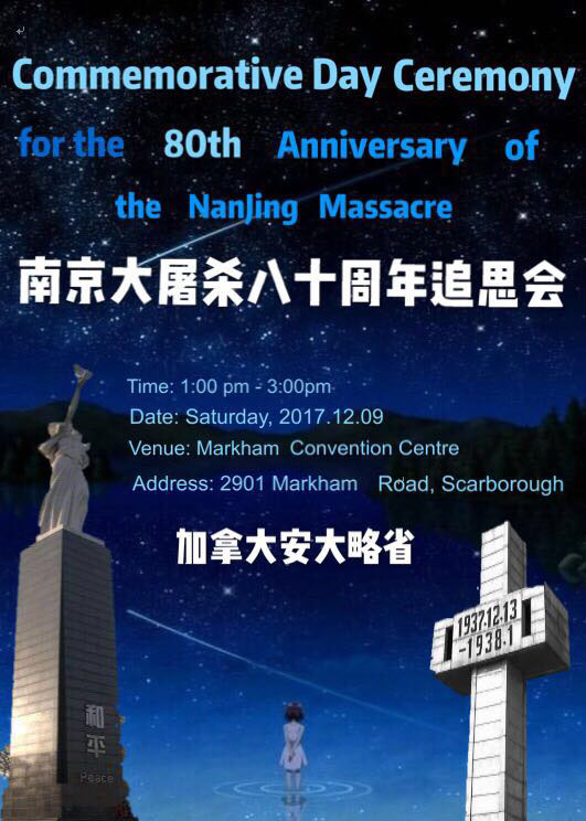 各位朋友,无论你是什么族裔,只要你希望世界和平,让孩子们更加了解历史,带着为孩子创造一个更加美好世界的愿望,请带着你7岁以上儿童参加12月9号周六下午的追思会!
