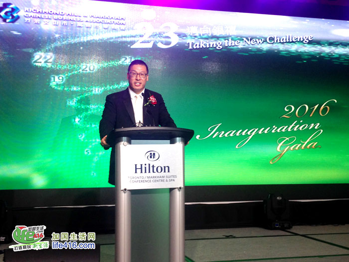 【加国生活网】烈治文山市&万锦市华商会新一届会长及会董就职晚宴于2016年9月17日成功举行,当晚同时庆祝该会成立23周年,约700位嘉宾出席。晚宴部分收益将捐给万锦多福医院(Markham Stouffville Hospital),回馈社会。