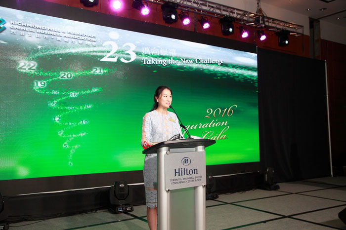 RBC皇家银行商业理财服务商业理财客户经理林晓典在宴会上表示,皇家银行对于长期支持烈治文山市&万锦市华商会感到骄傲,并期待与新会长陈卓彦紧密合作。她说:“我们期待一起庆祝陈会长的上任,同时协助为万锦多福医院筹款,服务人群。”