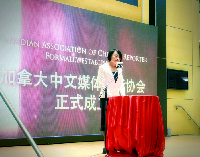 中国驻多伦多总领馆政新组刘园园领事和叶祎领事出席了揭牌仪式。刘园园领事在致辞时表示,不久前中加两国领导人在一个月内实现互访,双方就进一步发展中加两国全面战略关系达成一系列重要共识,中加关系面临崭新的发展机遇。在此背景下,加拿大中文媒体协会的成立,在传播中华文明,搭建中加文化交流桥梁、加深两国人民相互了解和友谊等方面将大有可为。