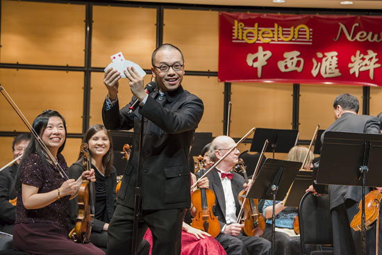 担任音乐会主持的是集音乐剧编剧导演,脱口秀,魔术师于一身的张科民。音乐会中观众最无聊的时刻就是观看音乐会中乐队换台,搬钢琴等,这却给张科民提供了才艺表演的机会,他的幽默的调侃和观众互动赢得观众的笑声掌声,更增加了欢度新年的气氛。