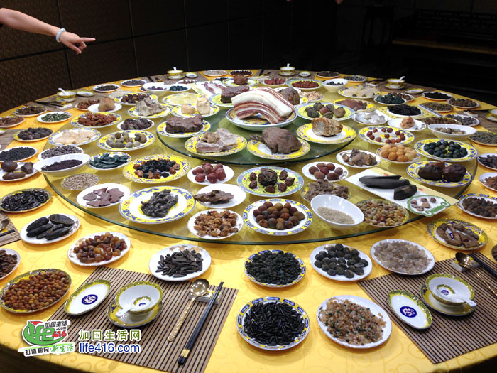 以下二张图片是此次采访的最最精华部分:满汉全席。什么?这不是矿物博览会吗?怎么会有食物?