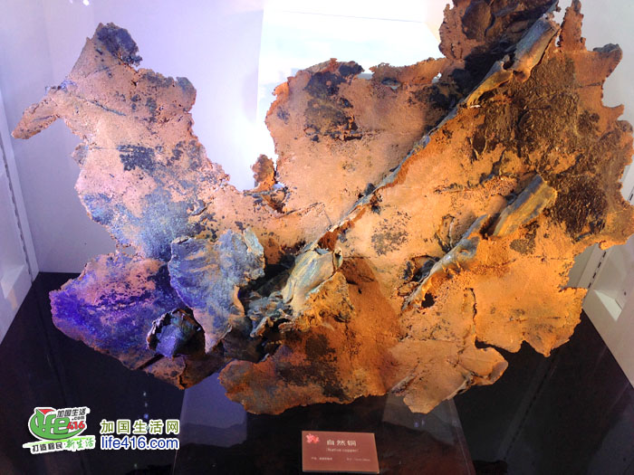 矿博会的矿物科普展示厅汇藏了来自国内外矿物晶体三百多种,近千余件。主要有纯天然原生宝石级萤石、白钨、海蓝宝、紫晶等,来自上帝之手的绝美艺术珍品,宝贵的不可再生资源在这里汇聚,可谓是品种齐全,丰富多彩、玲琅满目。此图是矿博会上展出的各种矿物宝石之“自然银”。