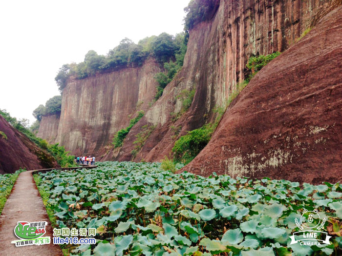 沿着荷花塘间的小路,一边看荷叶,一边看丹霞,心情极好