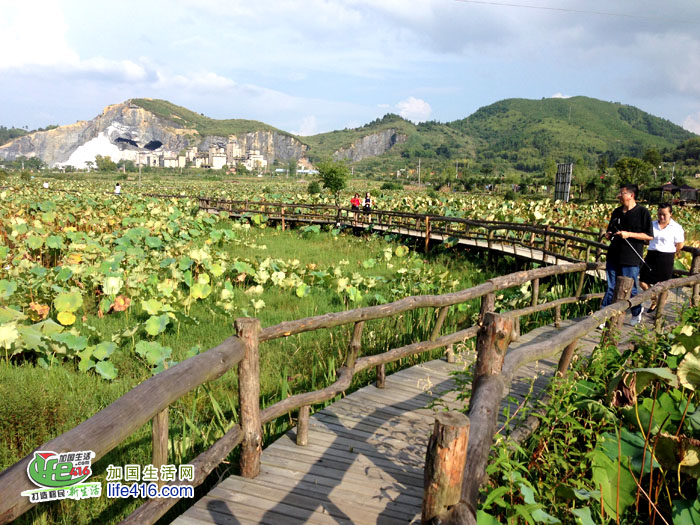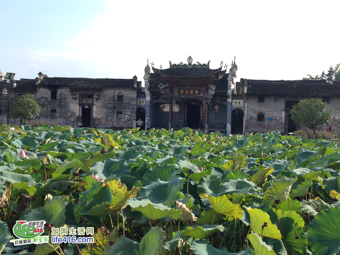 我们到金山古村采访时,由于已经过了荷花盛开的季节,所以看到的只是没有荷花光有荷叶的景象。