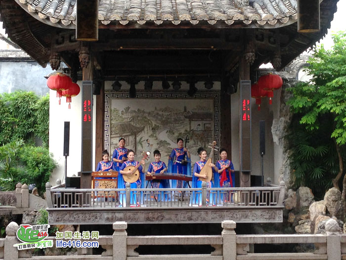 在水榭戏台观看戏剧演出,水清、风清、音清,静静地体会声学原理和美学价值