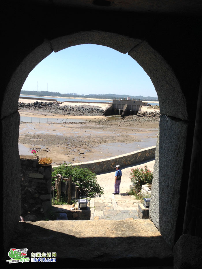 别小看这个小小的窗户,那个弧形的顶部修建起来相当地难。这种小窗户在几百年前作用,一是防风防雨,二是防倭寇。透过小窗户向外看,仿佛又看到了百年前的历史,再镜头切换,又能看到北港村正在建设的部分场地。