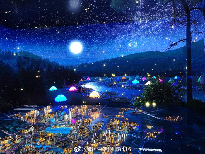 总览厅是中国目前最大的沉浸式展厅,以360度全包裹式的沉浸影片展示天府新区公园城市的建设路径。随着影片的放映,来宾被美轮美奂的场景笼罩,前方精致的沙盘随着屏幕内容的变化,变换成黄色、蓝色、白色等四季的颜色,让大家真切的感受到公园城市的美好场景。