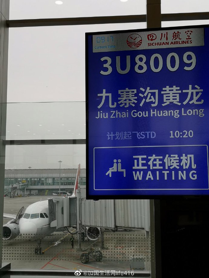 华文媒体团先是从成都坐飞机来到位于四川阿坝州松潘县境内川主寺镇北约12公里处的九寨黄龙机场,再从机场坐大巴到松潘县川主寺镇的林坡村。