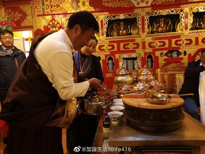 村长亲自为记者们倒上马茶和青稞酒,并与记者们分享他带领村民脱贫攻坚的经验。