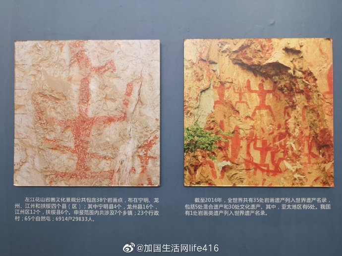 花山岩画因其景观、岩画与中国南方壮族先民骆越人生动而丰富的社会生活融合在一起所显示的独特性。2016年7月15日,在土耳其伊斯坦布尔举行的联合国教科文组织世界遗产委员会第40届会议上,中国世界文化遗产提名项目“左江花山岩画文化景观”与湖北神农架一起入选《世界遗产名录》,成为中国第49处和第50处世界遗产。花山岩画申遗成功填补了中国岩画类世遗项目的空白。