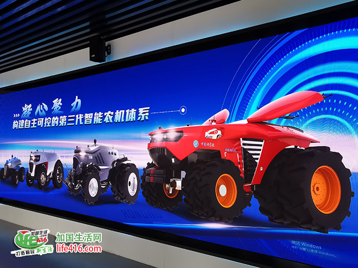 在示范区的智能农机展示区,一个象变形金钢的“大家伙”更是吸引了众多目光。