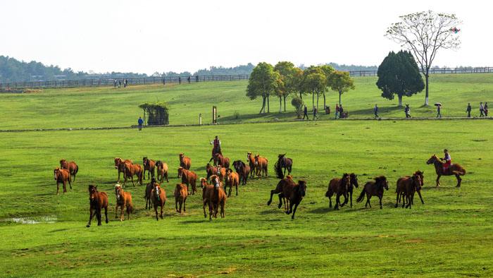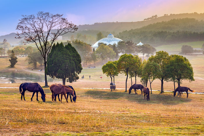 景区集旅游观光、休闲度假、会务培训、野外拓展于一体,景区还包含各种游乐项目,其中包括:华中地区唯一一家占地面积两万多平的网红萌宠打卡乐园、全长两千多米的玻璃漂流、环线全长4.3公里的轨道火车、新西兰滑车、骑马、射箭等。
