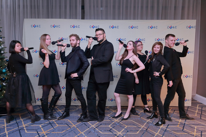 晚宴现场除了颁发“专业成就奖”及“青年成就奖”以外,更是为宾客们提供了精彩的现场表演。来自多伦多的八人音乐组合Beatsync为晚宴带来了极具特色的演出,他们风格多变的编曲,轻松而富有创意的演唱博得观众阵阵掌声和喝彩。另外,场外的静拍环节也让嘉宾们在节日季到来之前买得尽兴。由众多机构及个人捐助的静拍物品琳琅满目,品种多样,让嘉宾们既拍得了物美价好的物品又为慈善事业贡献了自己的爱心。