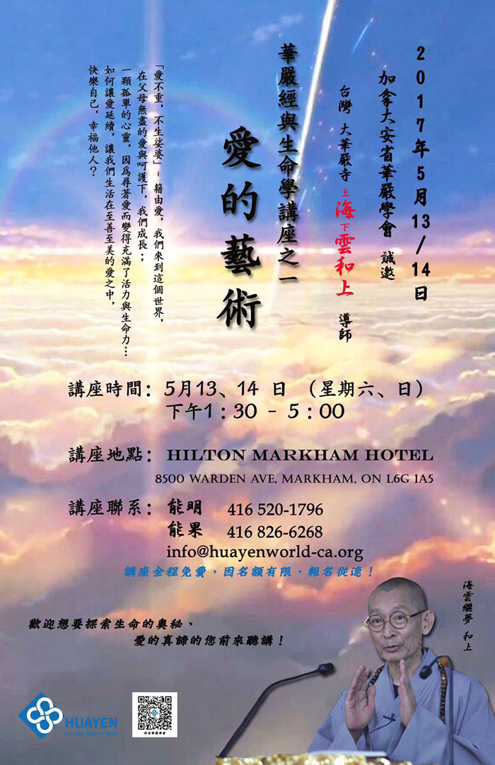 华严经与生命学讲座之《爱的艺术》将于5月13日至14日举行