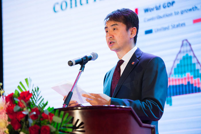 何总领事在致辞中简要回顾了新中国成立68年来特别是近5年取得的辉煌发展成就,表示中国已经从建国之初经济总量不足189亿美元的国家,发展成为GDP达11万亿美元的世界第二大经济体。过去68年,是中国治理改造和社会变革的创新历程,也是中国发展成果惠及世界的过程。“中国制造”给世界带来高质量的商品,“中国创造”引领世界经济及科技创新发展,“一带一路”等“中国倡议”带动大家实现共同发展、共同繁荣。