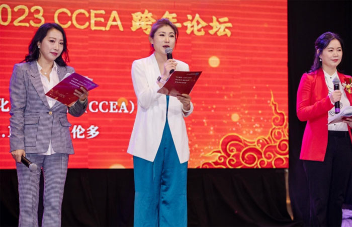 CCEA跨年论坛主持人:CCEA副会长韩笑博士(中)、王慧和陈丹蕾