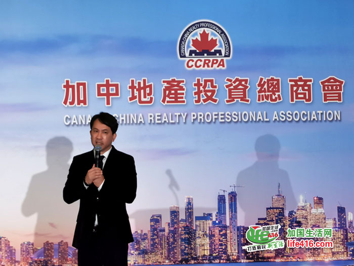 万锦区域议员李国贤、万锦市议员杨绮清、万锦市议员李思韵、地产局代表CREA区域董事Winson Chan,参展商代表和CCRPA总裁委员会代表-大鹏地产总裁Tony Ma 、支持单位代表ACCC加中建筑总会副会长Max Yi ,房东网活动总负责人David Zhang和加拿大青商俱乐部陈国波主席等到会发言。