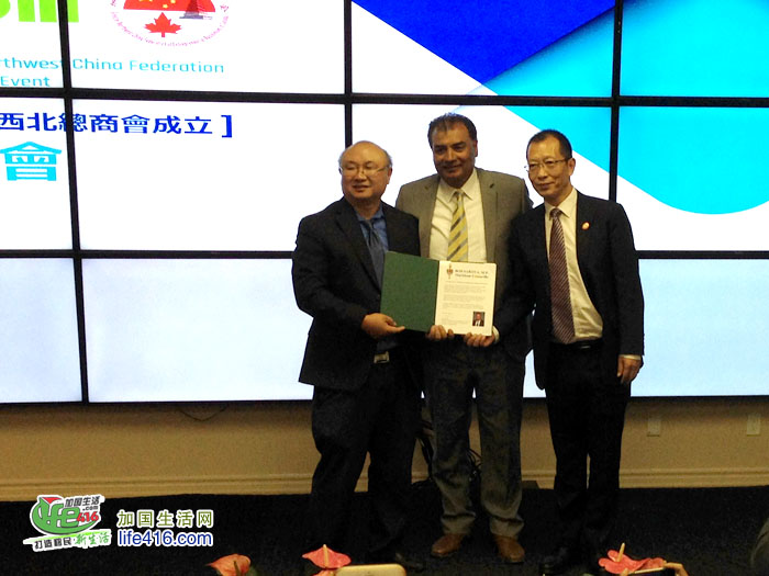 发布会的另一个主题是祝贺加拿大大西北总商会正式成立。加拿大大西北总商会是在2017年12月18日在加拿大联邦政府注册的非盈利会员制团体组织,是由工作和生活在中国大西北地区和加拿大的企业家们组成。加拿大大西北总商会会长张运波先生表示:“我们的宗旨就是加强加拿大和中国大西北地区之间的贸易合作、商业投资和文化服务,为商会的会员们提供一个包括矿业、金融、地产、农业等领域的贸易平台和科学、技术、教育等方面的信息交流中心,利用加拿大和中国大西北地区的多种资源为加中两地增加更多的投资及商业机会。”