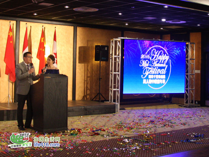 在这传统节日中发来贺电的有:加拿大联邦参议员胡子修;总领事薛冰;安省国际贸易厅厅长 陈国治;安省议员 董晗鹏,杨绮清;安省进步保守党党魁彭建邦;东南卫视主持人紫薇,古晓;相声表演艺术家李菁,李伟健。青年演员宋宁;还有福建电视台主持人叶子,金于宸。